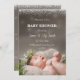 Baby Shower Photo Invitation. This beautiful baby shower invitation lets you write a customised message, show your registries, and make any gift requests. It's elegant, featuring a glittery baby photo with flowers, with a pretty white and silver overall theme. You can use the templates any way you would like, and if you would prefer a plain backing you can delete any elements you'd prefer not to have. Feel free to contact us if you have any questions, need any help or advice, or if you have any product requests.