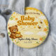 Sweet teddy bear baby shower pin with honey theme—perfect keepsake and party favor for guests.
