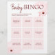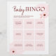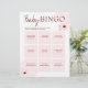 Baby shower baby bingo game personalised template pink and burgundy with pink flowers for a baby girl.