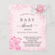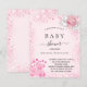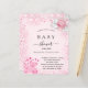 A modern, elegant baby shower, celebrating a baby girl. A light, blush pink background decorated with pink faux glitter, sparkles and flowers and two pink teddy bears. Personalise and add a name and party details. Black coloured letters.