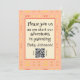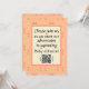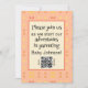 Celebrate your adventures in parenting your new baby with 2024's trendiest colour, peach, in a retro single-sided design with a modern QR code for your loved ones to get more details about your event. Calming and soothing while also being uplifting, peach is the trendy colour of 2024, and this design uses that colour in 3 ways, in two different shades in the design and as a complementary background colour. It's a fun tiled repeating geometric retro pattern version of the Four Corners Peach and Yellow design, with the design leading off the product so you think beyond the limitations of space. Not so in to peach fuzz? You can change the background colour to whatever you want! You'll still be on trend with the repeating peach and yellow design elements, but not mindlessly following the crowd. This soothing design works well in a living room, bedroom, outdoor living area, or a baby or child's room. Design description: The basic design based on one square inside another, although no lines connect the squares, your brain does that work for you. The inside square is darker yellow at the four corners, there's no design connecting the corners. Outside that is another square, made up of lighter yellow in the four corners, with two daubs of peach in between each corner. There are two peaches, one more red and the other more yellow, and matching colours are across from each other. The middle and corner sections are tiled across the pattern, which creates addition single colour squares. Text description: All text is a template so you can change to whatever you want. You can also customise all the fonts. Front text reads, "Please join us as we start our adventures in parenting Baby Johnson!" Below that is a QR code you can customise with your baby registry or website. There's template text to tell people what is at the QR code, with text on both sides. Back side has the underlying design but no text.