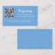 This Baby Shower Registry QR Code Blue Enclosure Card is easy to personalise online before ordering. Please change the website address for the QR code, to your existing website address for your baby shower registry and please also personalise the text fields as appropriate. Once you have made all the desired personalisation changes, then before adding to cart please ensure that all the wording is correct and that you are also happy with the layout and also please scan the QR code with your phone to check that it goes to your registry website.