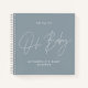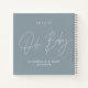 Baby shower script modern dusty blue elegant party design. Ideal gender neutral napkin party guest book design.