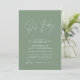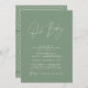 Baby shower script modern sage green elegant party invitation design. Ideal gender neutral design. Perfect coordinating autumn, fall winter baby shower design.