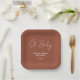 Baby shower script modern terracotta brown elegant party design. Ideal gender neutral design. Perfect coordinating summer, autumn, fall, winter baby shower design.