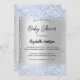 For an elegant and baby shower invitation, celebrating a baby boy. A faux silver looking background. Decorated with light blue confetti rain, sprinkle. Personalise and add a name and details. Modern hand lettered style script