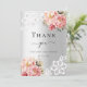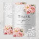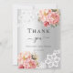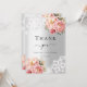 A modern and elegant baby shower thank you card. A faux silver looking background. Decorated with blush pink roses, florals flowers and lace.