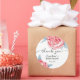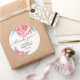 Baby shower sticker features adorable watercolor peonies, soft pink flowers and emerald leaves.