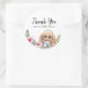 The baby shower sticker features adorable watercolor roses and a cute stuffed bunny.