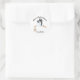 Cartoon stork flying with a baby in a blanket on a white background for a Baby Shower.