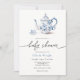 Baby Shower invitation featuring a chinoiserie teapot perfect for a Baby Tea Party. Customise with your information for the bride to be. Click "click to customise further" to change the font style, size or colour.