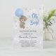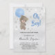 Baby shower teddy bear blue silver boy invitation