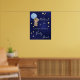 For a baby shower celebrating a baby boy. A navy blue background, with yellow stars. The blue colour is uneven. A teddy bear holding a blue balloon. Personalise and add the name of the mum to-be.