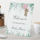 Baby shower teddy bear girl pink eucalyptus forest pedestal sign