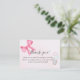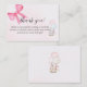 A thank-you card showing a pink watercolor bow and soft pastel baby elements, designed to thank guests for attending a baby shower for a baby girl.