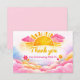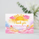 This baby shower thank you card features a bright watercolor sunshine design with soft pink and warm yellow tones. A cheerful and sweet style created for a baby girl celebration, perfect for expressing gratitude after a joyful baby shower. The clean nursery-inspired artwork coordinates beautifully with sunshine-themed baby shower designs and adds a warm, happy touch to any celebration.