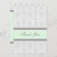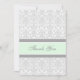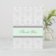 Baby shower thank you for the gift cards in elegant light pastel mint green, grey and white classic floral damask vintage pattern. Fully customisable, two sided, with space to write your own thank you message. Available in many matching products for all your baby shower or party needs. Contact us to request a colour change or custom design.