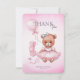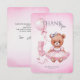 Baby shower Thank You Cards featuring an adorable watercolor illustration of a teddy bear in a cute pink dress.