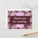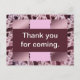 This postcard offers an inexpensive thank you note for your baby shower guests. This postcard features a square pattern quilt design in beautiful pink and purple. Silky ribbon frames each square and also forms a border around the entire card. "Thank you for coming." can easily be customised if you desire.