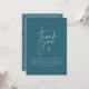Baby shower script modern teal blue elegant party thank you postcard design. Ideal gender neutral design.