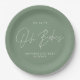 Baby shower script modern sage green elegant party design. Ideal gender neutral napkin party design. Oh Babies twin or multiple birth baby shower party favour paper plate decor.