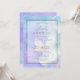 Delicate Baby Shower Invitation in Blue and Purple - A sheer white gold framed overlay on this blue and violet purple watercolor painting of a butterfly on light blue tulips - all text is customisable