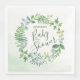 These baby shower napkins feature a greenery watercolor wreath with foliage. Personalise these napkins with a name. These napkins are part of a collection which includes a full range of matching baby shower products. Please view the collection page or visit our store to see the full range.