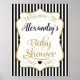 An elegant baby shower welcome sign featuring black white stripes and gold glitter trim with customised name for the mummy-to-be. A pretty gold swirl design with a heart in the centre makes this baby shower sign a lovely way to introduce guests to your formal baby shower. More black and gold items can be found in my shop.