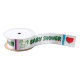 Baby Shower written in green shadow typography with red hearts element. Whimsical green horse and pink and blue vertical stripes. Designed for 1.5" width. See store for design in 3" width. (See item material description). Original Artwork Design by TamiraZDesigns.