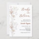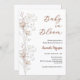 On front: White background, cream, beige coloured wildflowers. Personalise and add a name and party details. Text: Baby in Bloom.