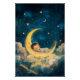 A digital beautiful illustration of a baby sleeping on a crescent moon.
