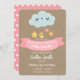 A cute baby sprinkle invitation for the mum-to-be. This features a cloud and pink ribbon banner over a kraft paper background.
