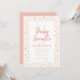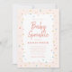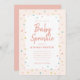 A whimsical baby sprinkle baby shower invitation featuring rainbow sprinkles border on a blush pink background.