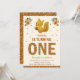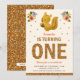 Amaze your guests with this cute birthday party invitation featuring an adorable little baby squirrel holding an acorn and pretty flowers with modern gold typography on a beige background. Simply add your event details on this easy-to-use template to make it a one-of-a-kind invitation. Flip the card over to reveal a faux gold glitter texture on the back of the card.