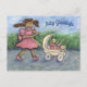 Word on note card note "Kitty Greetings" but can be changed to make your own custom greeting card message. Art features a little girl in pink pushing a baby stroller with 2 cats. Make your own custom cat lover gifts with personalised messages!