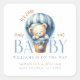 Celebrate the upcoming arrival of your little one with our enchanting Baby Teddy Bear Blue Hot Air Balloon design. This delightful illustration features a charming teddy bear seated inside a blue hot air balloon, making it the perfect centerpiece for a memorable baby shower.