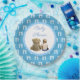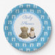 Baby & Teddy Bear Boy Baby Shower Paper Plates with blue background and white footprints. These are adorable for any blue or teddy bear themed baby shower.