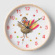 A cute colourful clock for children with my digital artwork of a little turkey surrounded by autumn leaves.