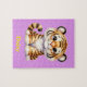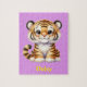 This kid's puzzle with purple background and a baby tiger can be personalised with your child's name.