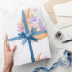 Baby Unicorn Over The Moon with Flower Wrapping Paper
