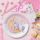 Baby Unicorn Over The Moon with Flowers Paper Plate
