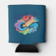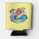 Whale and waves tropical sunset with silhouette palm trees and vibrant colours 80s style cartoon drawing.