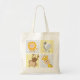 Baby lion, zebra, monkey and giraffe cartoons in yellow and grey chevron squares. Cute jumbo tote bag for baby's things.
