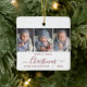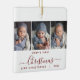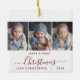 Help them commemorate their grandchild's first Christmas with this beautiful modern keepsake ornament. The burgundy red text reads "Baby's first Christmas," with the word "Christmas" in elegant handwriting script with flourishes before and after. Replace the three sample images with your favourite vertical photos, and add baby's name and the year.