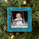 This lovely Baby's 1st Christmas photo ornament with an aqua glitter edge, the words "My 1st Christmas", your child's name and the year will look beautiful on your tree. You'll cherish it and enjoy taking it our every year to put on your tree.
