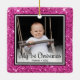 This lovely Baby's 1st Christmas photo ornament with a pink glitter edge, the words "My 1st Christmas", your child's name and the year will look beautiful on your tree. You'll cherish it and enjoy taking it our every year to put on your tree.