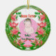 Bring a lot of joy, merry making and life to your Christmas tree with this Cute Baby's first Christmas Custom Photo ceramic ornament. This adorable Christmas ornament has illustrations of Green Botanical Wreath, peach colour flowers and a placeholder for your image. It is possible to add family photo and personal message to both sides of this ornament. You can put a strand of gold thread to hang this fantastic keepsake. You can customise and re-arrange with the "Customise further" button with your choice of font style, text format and photo.