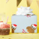 Baby's 1st Christmas personalised wrapping paper with cute Santa owl cartoon. Fun pattern design with custom season's greeting or wishes. Funny bird design wearing a Santa Claus hat. Custom background colour. Sweet gift wrap for new baby boy or girl. Add your own name and Holiday message. Pretty wrappingpaper for newborn child and new parents. Create giftwrap for son, daughter, granddaughter, grandson, grandchild, nephew and other children. Merry Xmas! First Christmas wrappingpaper for presents and favours.
