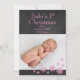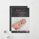 Pretty pink snowflakes decorate baby's photo on a chalkboard background.