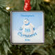 Cute little snowman wearing blue winter hat, scarf and mittens as delicate snowflakes fall through the winter sky is a delightful Christmas design for baby's first Christmas ornament. Personalise by replacing baby's name and year in template provided. We specialise in custom-made designs, contact us if you would like a unique 1st Christmas made-to-order layout using this snowman design.